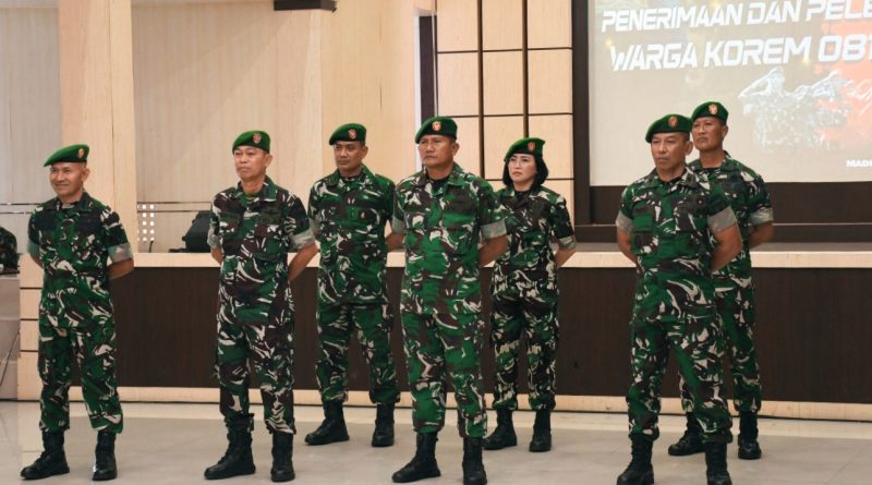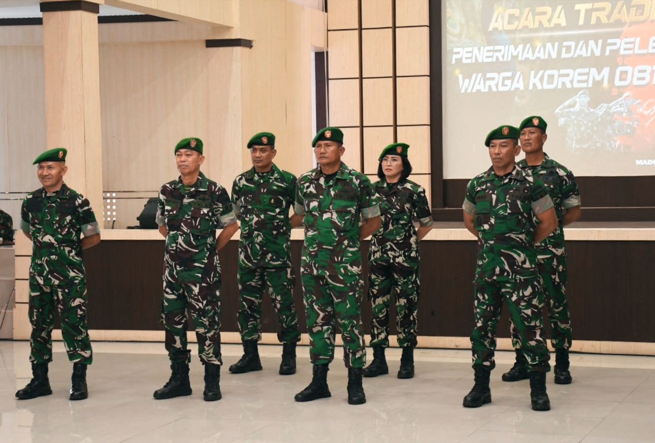 Madiun – Sejumlah Perwira Menengah (Pamen) TNI AD melaksanakan acara tradisi pelepasan dan penyambutan warga baru Korem 081/DSJ yang digelar di Aula Jenderal Sudirman, Makorem 081/DSJ, Jalan Pahlawan Nomor 50, Kota Madiun, Jumat (30/1/2026). Salah satunya Mayor Arm Timbul Moedjihartoyo resmi berpindah tugas sebagai Patih Arm Golongan VI Timtih Rindam V/Brawijaya.