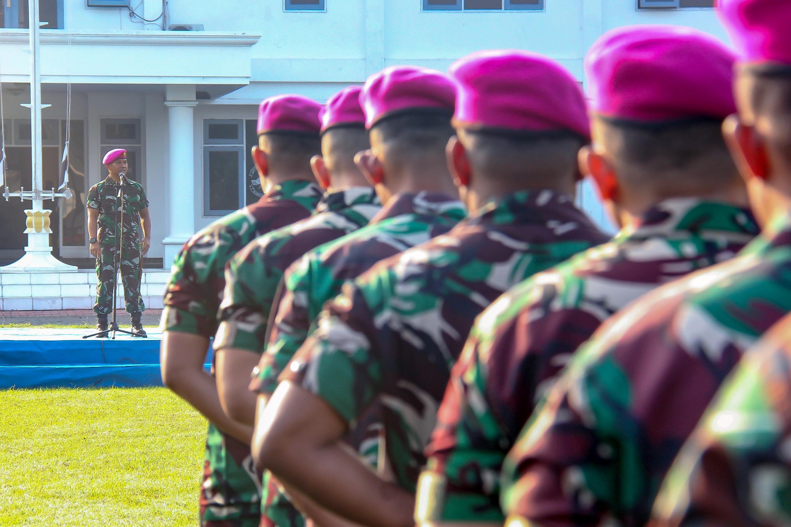 Surabaya, Komandan Resimen Kavaleri 2 Marinir (Danmenkav 2 Mar) Kolonel Marinir La Ode Jimmy Herizal Rachman, M.Tr.Hanla., M.M. melaksanakan apel khusus kepada seluruh Perwira, Bintara dan Tamtama serta Pegawai Negeri Sipil (PNS) yang berlangsung di lapangan apel Kesatrian Marinir Soepraptono, Semarung, Ujung Surabaya, Jawa Timur. Kamis (10/07/2025).
