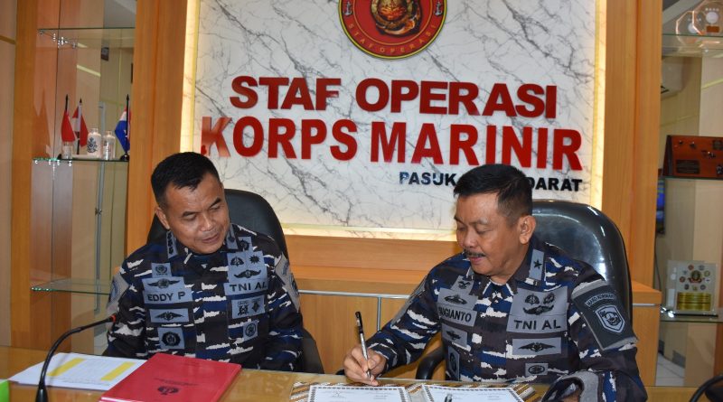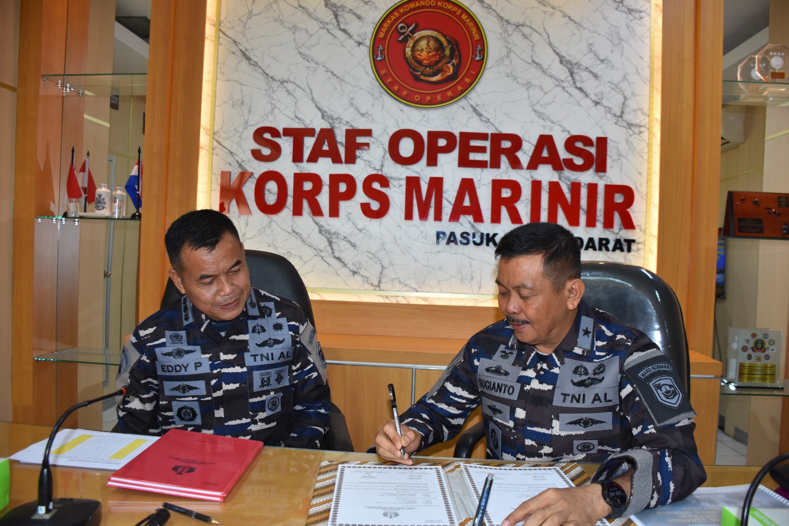 Jakarta. Dalam rangka serah terima jabatan Asisten Operasi (Asops) Panglima Korps Marinir (Pangkormar), dari Kolonel Marinir Edi Prayitno, S.M., M.Tr.Opsla. melaksanakan memorandum dengan Brigjen TNI (Mar) Sugianto, S.Sos., M.M., M.Tr.Opsla bertempat di ruang Rapat Staf Operasi Korps Marinir, Kesatrian Ali Sadikin, Jl. Prajurit KKO Usman dan Harun No. 40 Jakarta Pusat. Senin (08/09/2025).