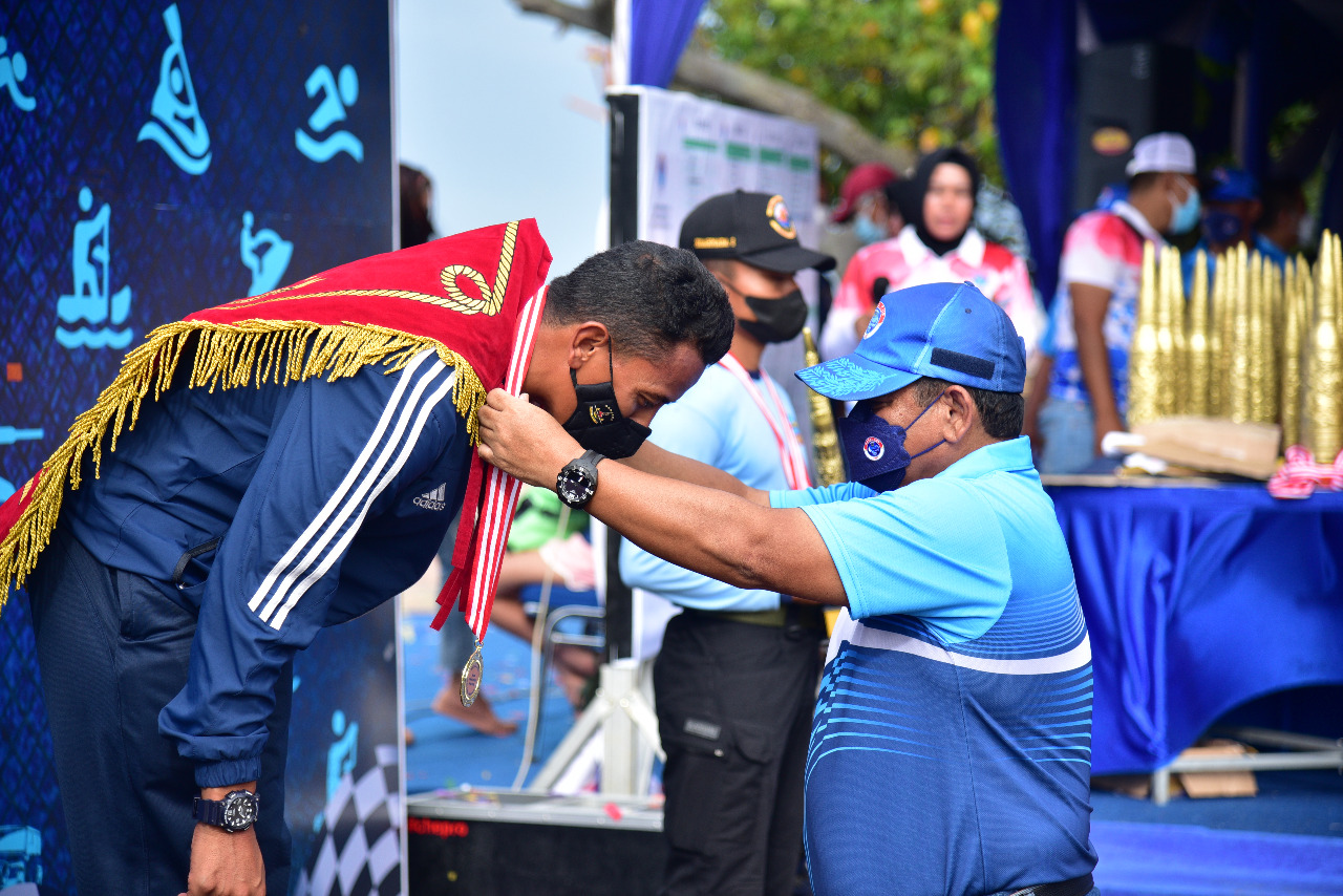Jakarta – Sertu Mar Fuad Ikhsan Fauzi Atlet Selam Laut dari Detasemen Jalamangkara (Denjaka) TNI AL berhasil meraih dua medali sekaligus pada Kejuaraan Selam Kasal Cup yang diselenggarakan di Pondok Dayung Jakarta, Minggu (28/11/2021), baru baru ini.