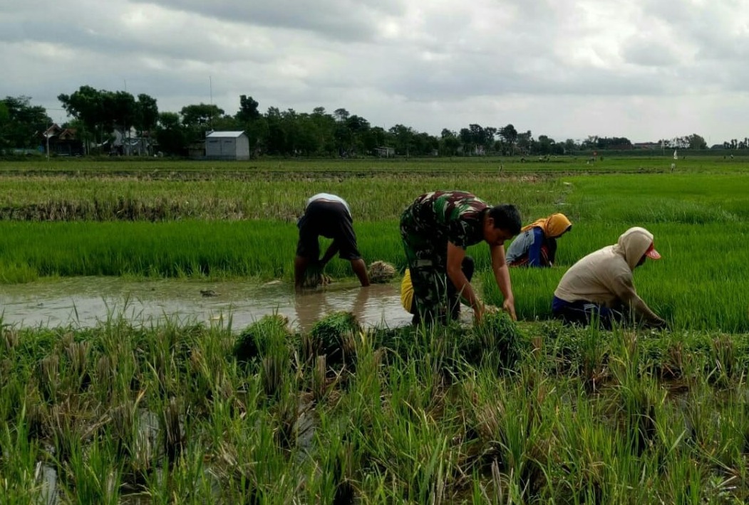 Babinsa Desa Bono Dampingi Pencabutan Benih Padi Siap Tanam, Dukung Ketahanan Pangan Nasional