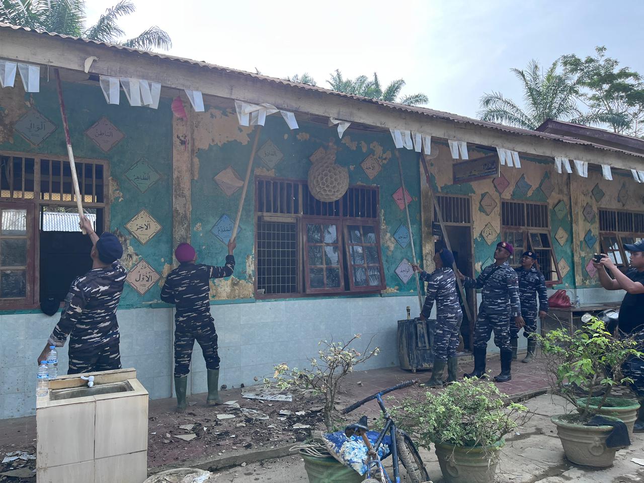 “Kami mengerahkan beberapa personel untuk membantu pihak sekolah. Fokus utama kami adalah membersihkan ruang kelas, perpustakaan, dan ruang guru agar sarana prasarana sekolah tidak rusak permanen dan para siswa dapat segera kembali belajar dengan nyaman,” ujar Danyonif.