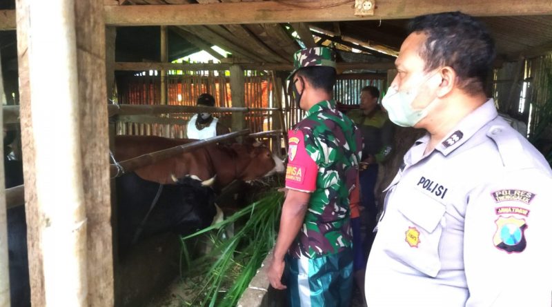 Cegah PMK, Babinsa Koramil 0806/13 Dongko Aktif Lakukan Pengecekan Kesehatan Hewan Ternak Warga