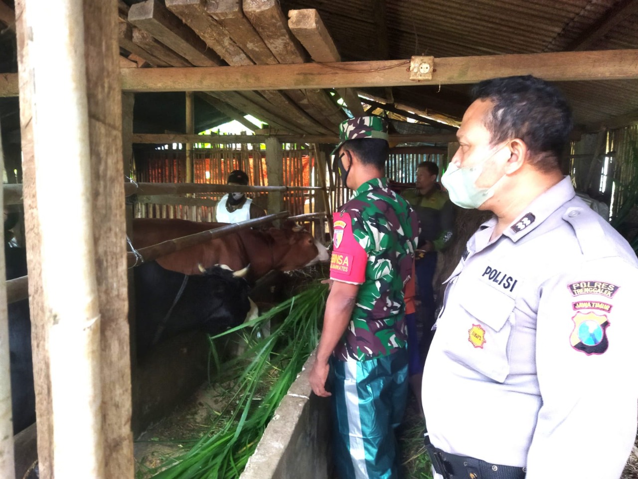 Dari hasil pengawasan, dan pengecekan langsung Babinsa bersama Pilar Desa dan petugas gabungan, untuk hewan ternak sapi milik Bapak Sumadi semuanya dalam kondisi sehat.