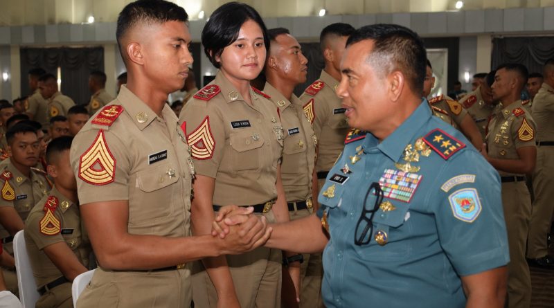 Surabaya. Sebanyak 431 Calon Perwira Remaja (Capaja) Akademi Angkatan Laut (AAL) Angkatan ke-70 dan ke-71 Tahun 2025 menerima pembekalan dari Komandan Korps Marinir (Dankormar) Mayor Jenderal TNI (Mar) Dr. Endi Supardi, S.E., M.M., M.Tr.Opsla., CHRMP., CRMP., bertempat di Gedung Maspardi, Kesatrian AAL Bumimoro, Surabaya, baru baru ini (08/07).