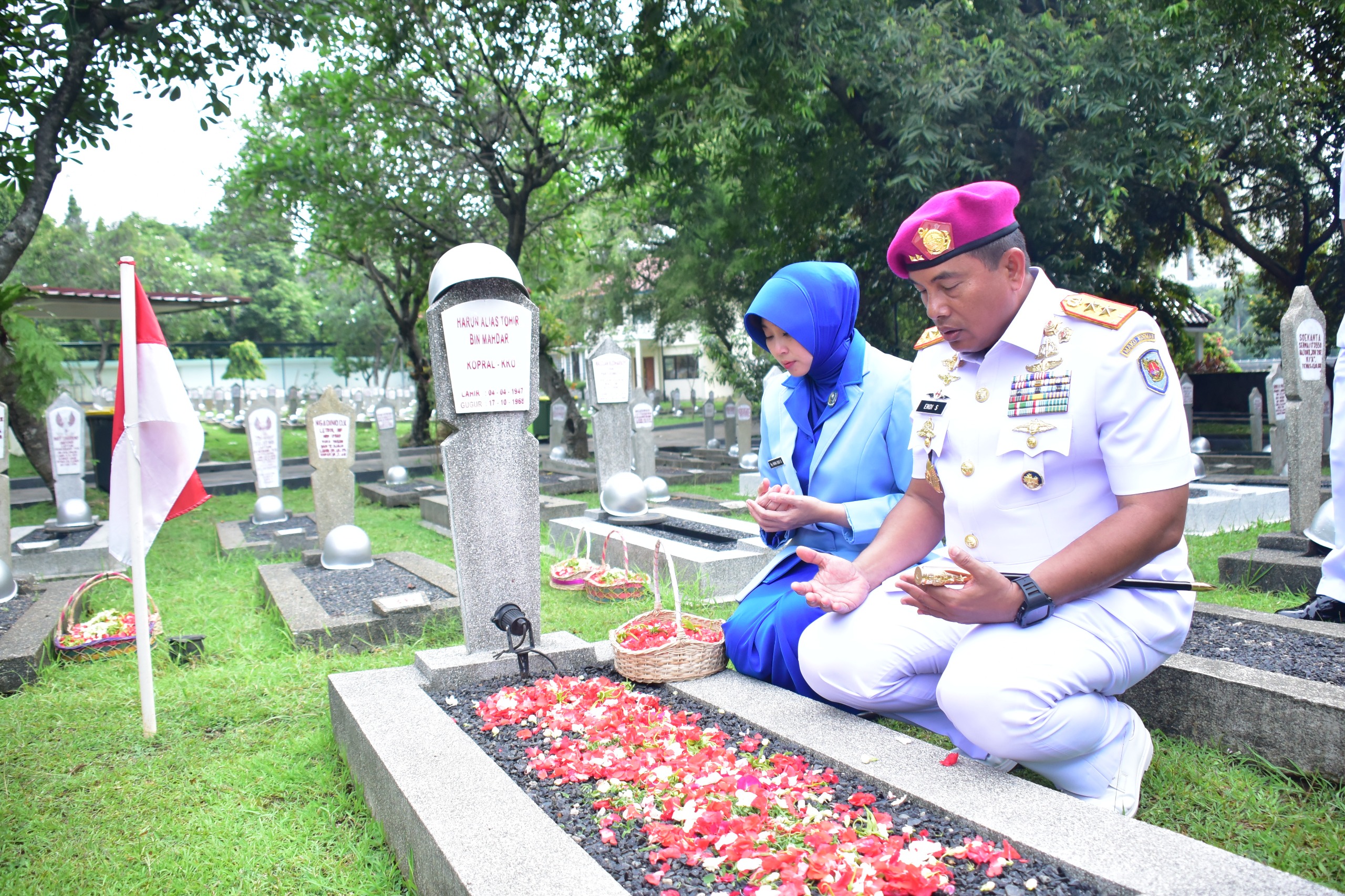 Dankormar Mayjen TNI (Mar) Dr. Endi Supardi Berdoa di Pusara Prajurit KKO Usman dan Harun