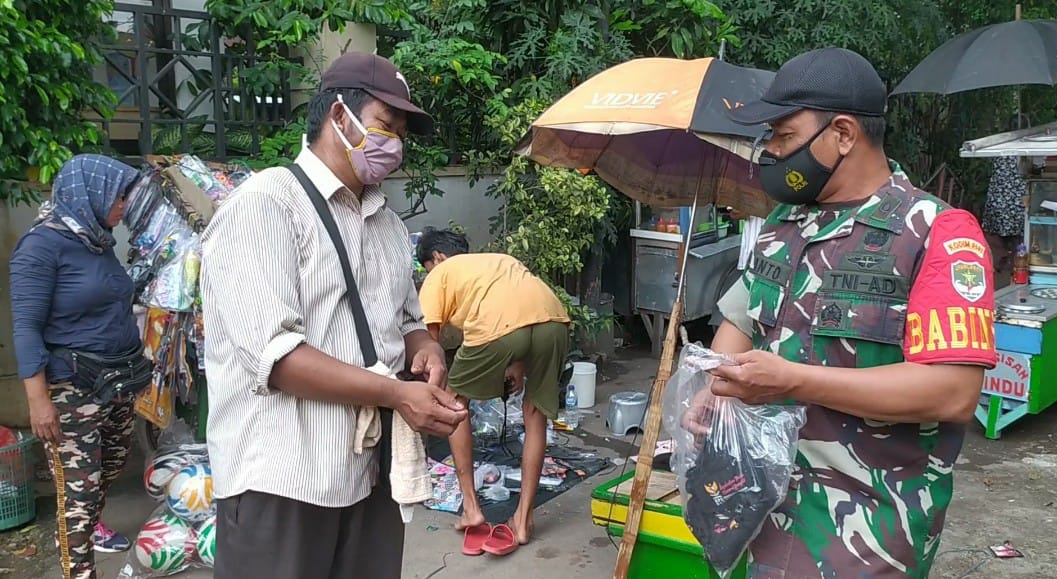 Di lokasi itu, lanjut Danramil, babinsa juga membagikan masker pada warga termasuk pedagang kaki disejumlah pasar yang didatangi. Pemantauan yang dilakukan babinsa dimasa PPKM level dua ini merupakan upaya pencegahan penyebaran virus covid 19 varian baru yang saat ini penularan mulai melonjak naik”, ujar Danramil.