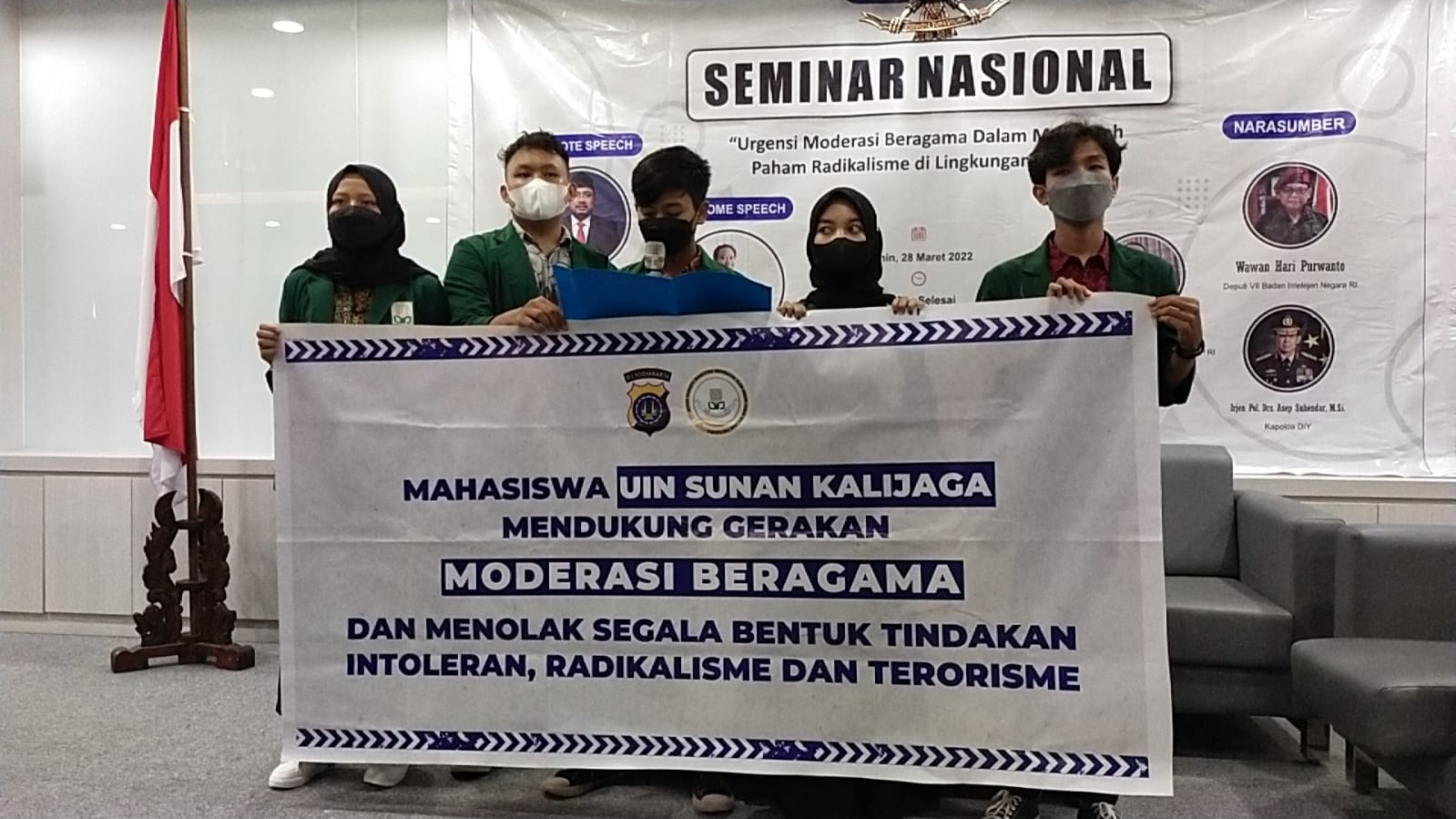 Deklarasi dirangkai dengan kegiatan Semnas (Seminar Nasional) bertema ‘Urgensi Moderasi Beragama Dalam Mencegah Paham Radikalisme di Lingkungan PTKIN’ yang diselenggarakan oleh Dema UIN Suka Yogyakarta, di Gedung Teatrikal FEBI (Fakultas Ekonomi dan Bisnis Islam) UIN Suka Yogakarta, di Jalan Laksda Adisucipto, Papringan, Caturtunggal, Depok, Sleman, Yogyakarta, baru-baru ini.