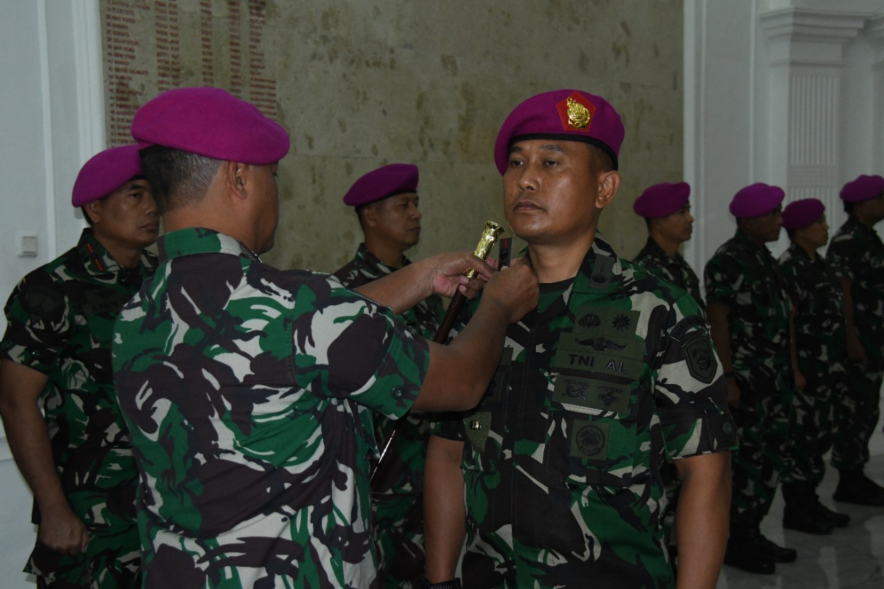 Komandan Korps Marinir Mayor Jenderal TNI (Mar) Widodo Dwi Purwanto, memimpin secara langsung Serah Terima Jabatan Komandan Detasemen Markas Markas Komando Korps Marinir (Dandenma Mako Kormar) di Gedung Utama Mako Kormar, Jalan Prajurit KKO Usman dan Harun No 40 Kwitang Jakarta Pusat, Selasa (27/12/2022).