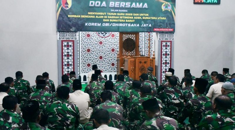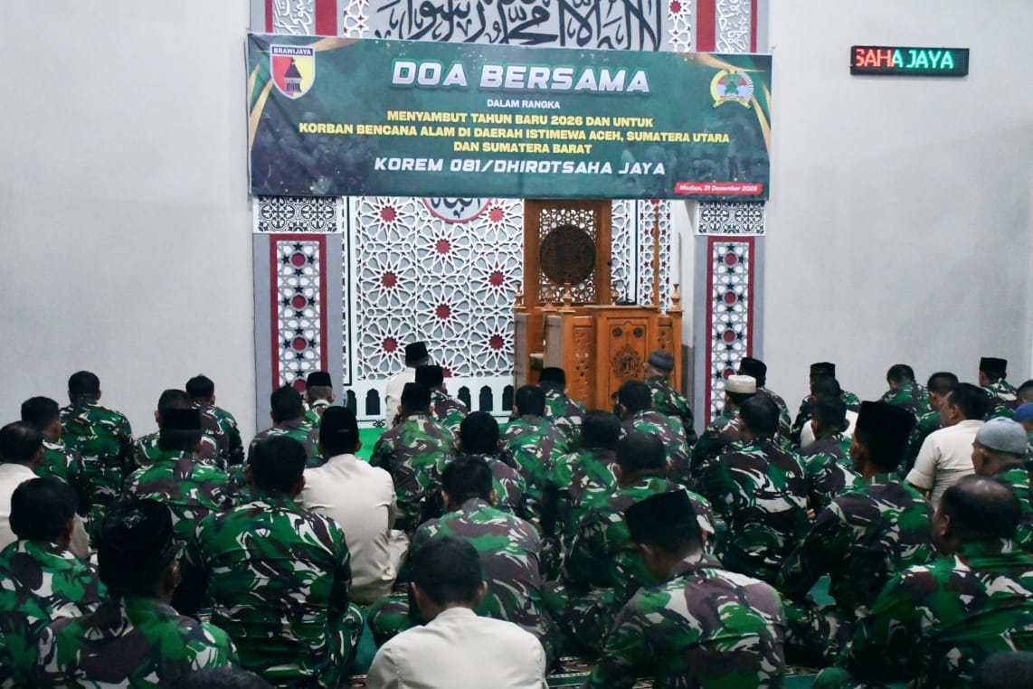 Madiun – Menyambut pergantian tahun baru 2026, Korem 081/DSJ menggelar doa bersama secara sederhana di Masjid Jenderal Sudirman, Makorem, Jl. Pahlawan No. 50, Kota Madiun, Rabu (31/12/2025).