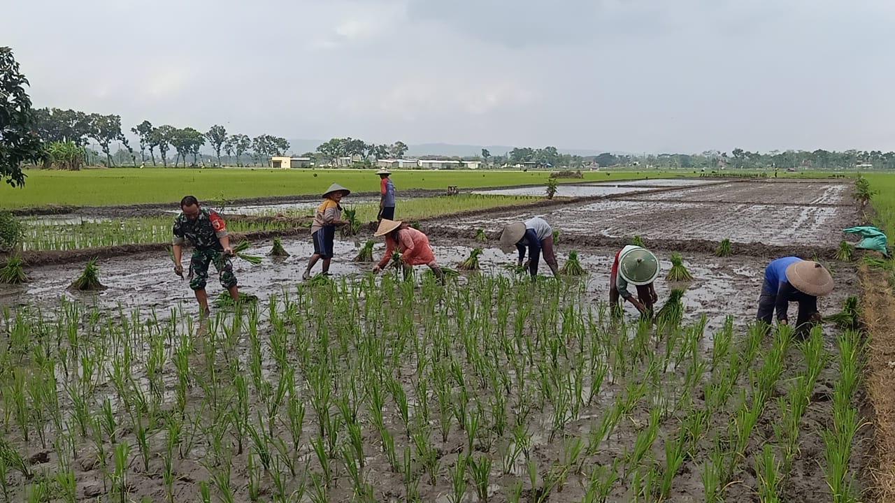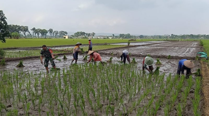 Dukung Ketahanan Pangan Nasional, Serma Agus Dampingi Petani Tanam Padi