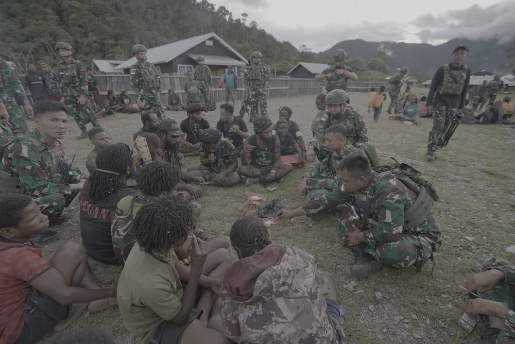 Puncak Jaya – Ditengah semilir angin pegunungan Papua, sebuah momen penuh makna terjadi di kampung Tirineri, Distrik Yambi Puncak Jaya. Personel Satgas Yonif 715/Mtl Pos Tirineri dipimpin oleh Wadansatgas Kpt inf Ichsan Pratama duduk bersama masyarakat kampung Tirineri sambil memakan pinang dan mengisap anggur kupu untuk mendengarkan curahan hati dan keluh kesah yang ada di tengah-tengah masyarakat Tirineri, Senin (26/05/2025).