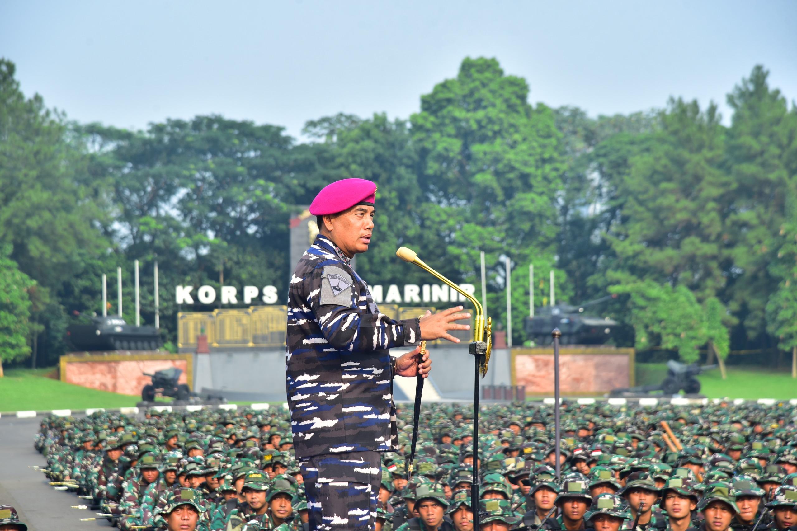 Dalam arahannya, Panglima Korps Marinir menegaskan pentingnya rasa bangga sebagai prajurit Jalasena yang dipercaya mewakili ribuan personel TNI Angkatan Laut. Pangkormar meminta setiap pasukan menampilkan sikap terbaik sebagai duta Angkatan Laut di hadapan bangsa. “Berdirilah tegap, gerakan harus patah patah, pandangan lurus ke depan. Periksa dari ujung rambut hingga ujung sepatu, seragam disetrika rapi, sepatu disemir mengkilap,” tegas Jenderal berbintang tiga.