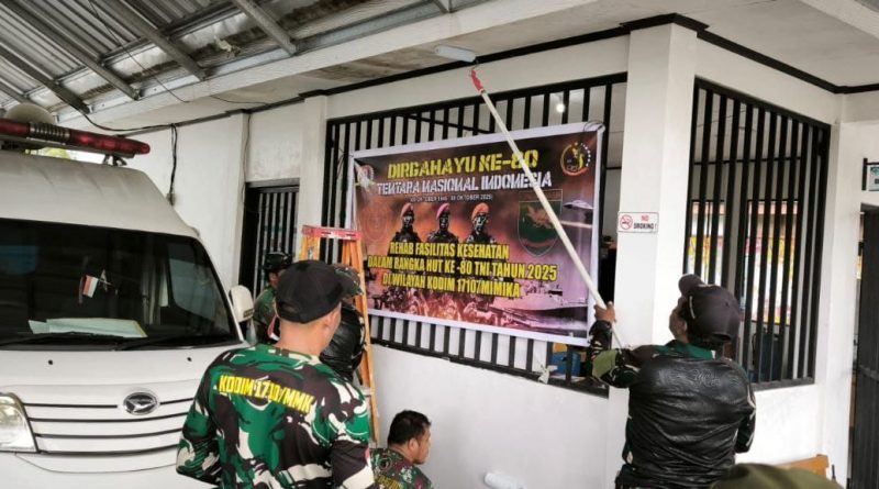 Jelang Peringatan HUT Ke-80 TNI, Kodim 1710/Mimika Gelar Bakti Teritorial Perbaiki Fasilitas Kesehatan Umum