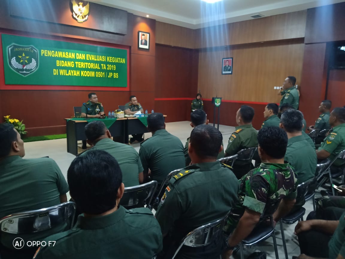 Jakarta, Dalam rangka memberikan pemahaman, pencerahan dan penjelasan terhadap program – program teritorial yang di canangkan oleh TNI Angkatan Darat dalam hal ini merupakan kewenangan Staf Teritorial Angkatan Darat ( Sterad ), maka dilaksanakan kegiatan Pengawasan dan Evaluasi ( Wasev ) bidang teritorial Kodim 0501/ JP BS bertempat di Aula Makodim Jl Selaparang Kav 1 Blok B 11, Kemayoran, Jakarta Pusat. Rabu ( 20/11/19 ).