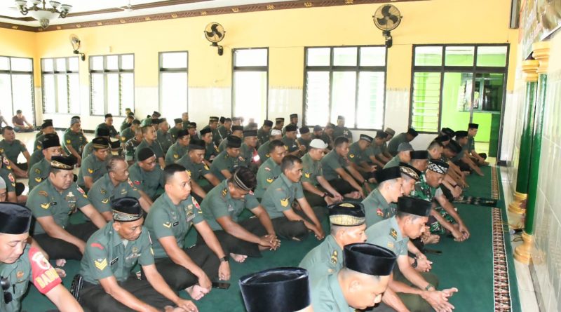Doa bersama dalam rangka memperingati HUT ke 59 Korem 081/Dsj tahun 2022 yang dilaksanakan usai sholat dhuhur tersebut dipimpin oleh imam sholat Serda Tumari.(MdC0802)
