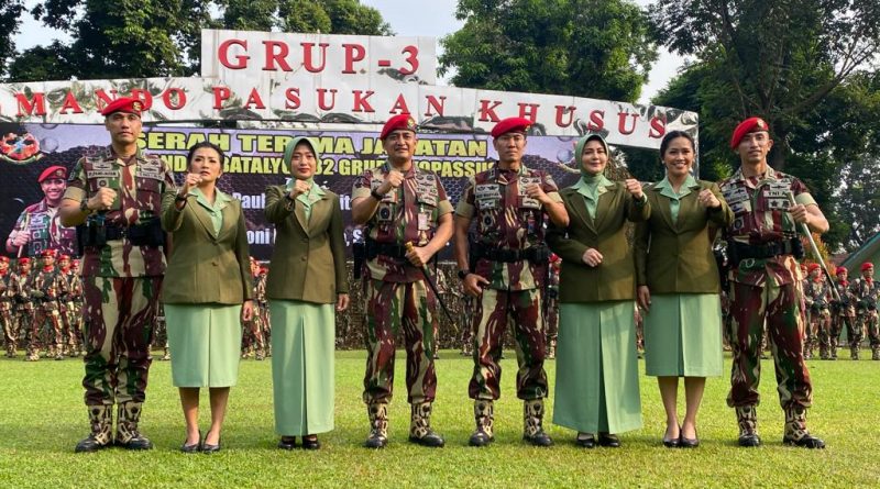 Jakarta – Komandan Grup 3 Kopassus Kolonel Inf Donny Pramono pimpin pergantian jabatan Batalyon 32 Grup 3 Kopassus dari Letkol Inf Paulus Pandjaitan S.H., MPICT kepada Mayor Inf Doni Fransisco. Pergantian jabatan yang digelar melalui upacara militer tersebut digelar di Lapangan Alfred Tarega Grup 3 Kopassus, Cijantung, Selasa (2/8).