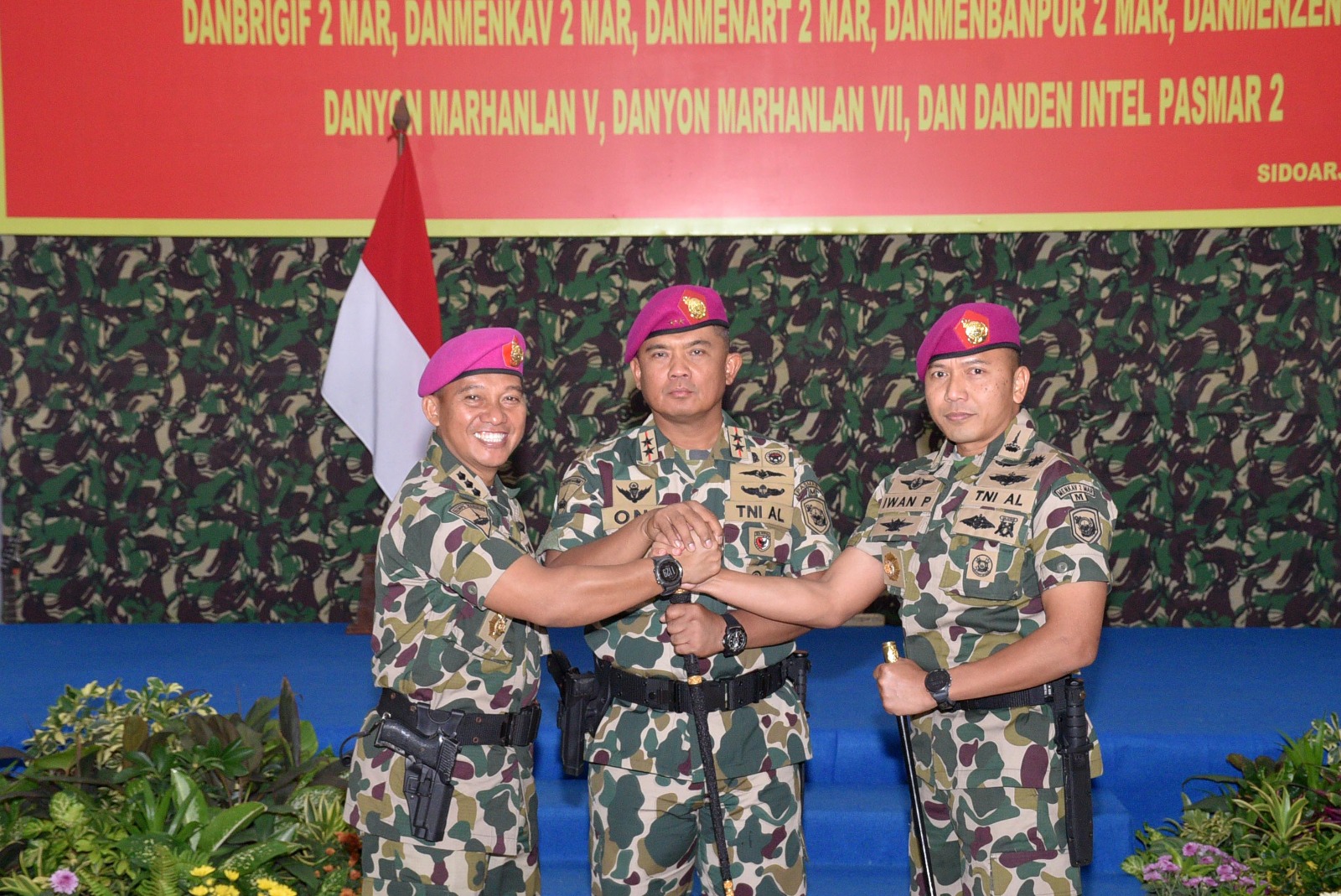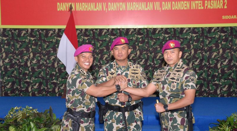 Sidoarjo, Komandan Pasmar 2 Mayor Jenderal TNI (Mar) Dr. Oni Junianto, S.A.P., M.M., M.Tr.Opsla., secara resmi melantik Letkol Marinir Iwan Permana, S.H., M.Tr.Opsla., menjabat Komandan Resimen Kavaleri 2 Marinir yang berlangsung di Graha Gafur Chalik, Kesatrian Marinir Moekijat Pasmar 2 Gedangan Sidoarjo. Senin (22/12/2025).