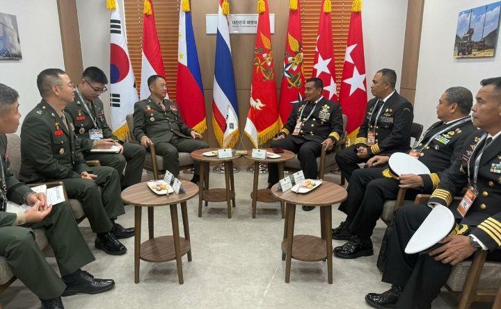 Korea Selatan, Panglima Korps Marinir (Pangkormar) Letnan Jenderal TNI Dr. Endi Supardi, S.E., M.M., M.Tr.Opsla., CHRMP., CRMP., melaksanakan courtesy call dengan Komandan Republic of Korea Marine Corps (ROKMC), Letnan Jenderal Ju Ill Seok, bertempat di International Exhibition Center, Seoul, Korea Selatan, Selasa (21/10/2025).