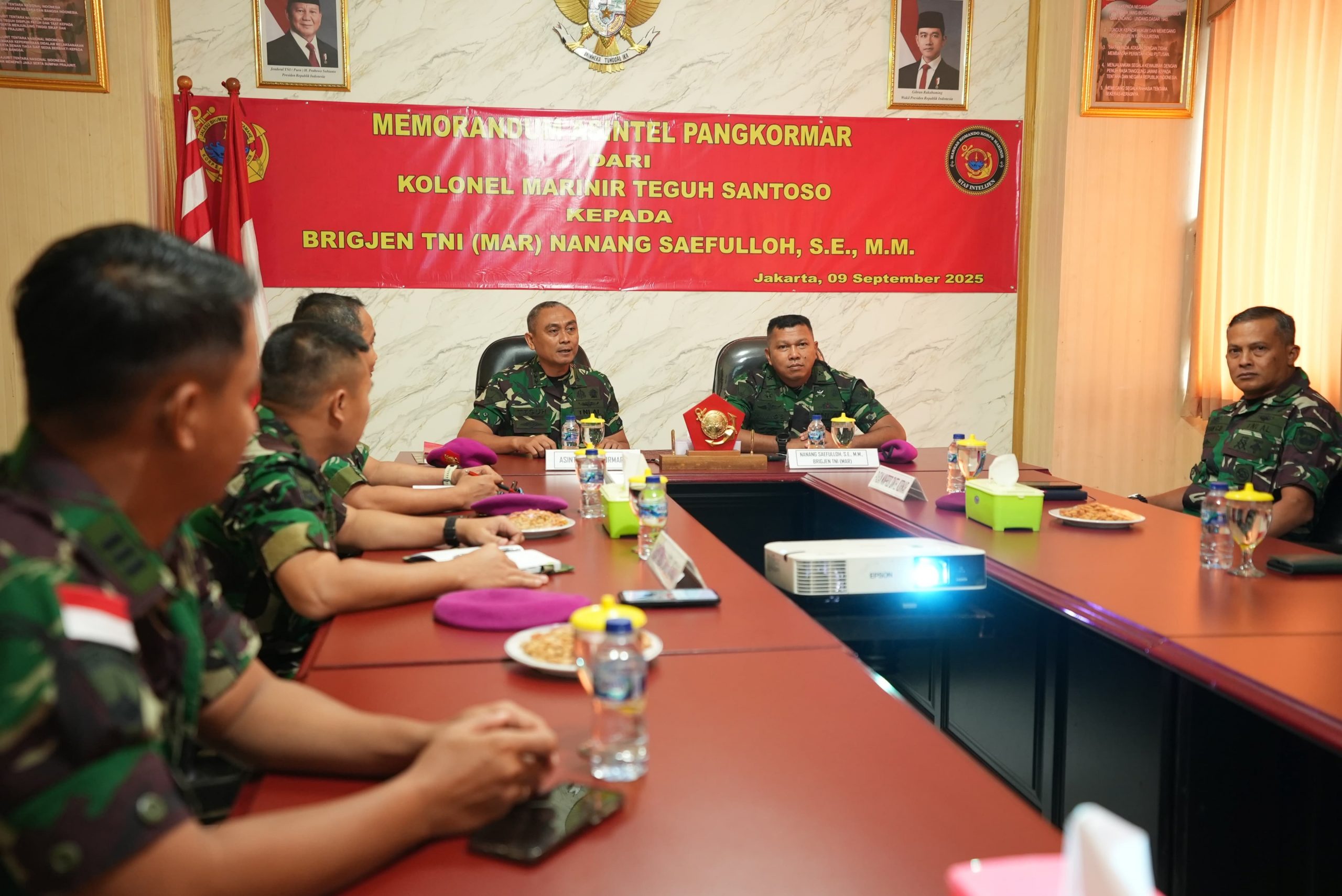 Jakarta. Estafet kepemimpinan di jajaran intelijen Korps Marinir kembali bergulir. Kolonel Marinir Teguh Santoso secara khidmat menyerahkan tugas dan tanggung jawab jabatan Asisten Intelijen (Asintel) Panglima Korps Marinir kepada Brigadir Jenderal TNI (Mar) Nanang Saefulloh, S.E., M.M., dalam prosesi memorandum yang digelar di ruang Rapat Staf Intelijen Korps Marinir, Kesatrian Ali Sadikin, Jl. Prajurit KKO Usman dan Harun No. 40 Jakarta Pusat. Selasa (09/09/2025).