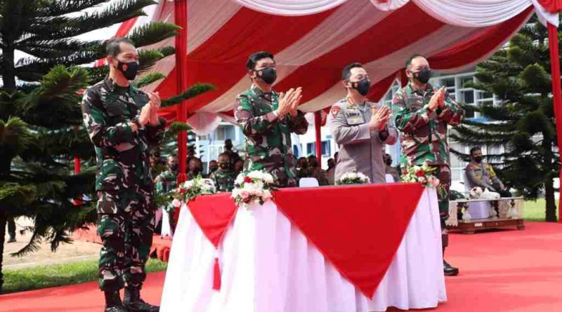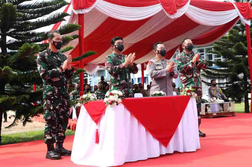 Panglima TNI Marsekal TNI Hadi Tjahjanto, S.I.P. didampingi Kapolri Jenderal Pol Drs. Listyo Sigit Prabowo, M.Si. dan Kasau Marsekal TNI Fadjar Prasetyo, S.E., M.P.P. meresmikan perpustakaan Widyasana di Sekolah Staf dan Komando Angkatan Udara (Seskoau), Lembang, Bandung, Jawa Barat, Jum’at (21/5/2021).