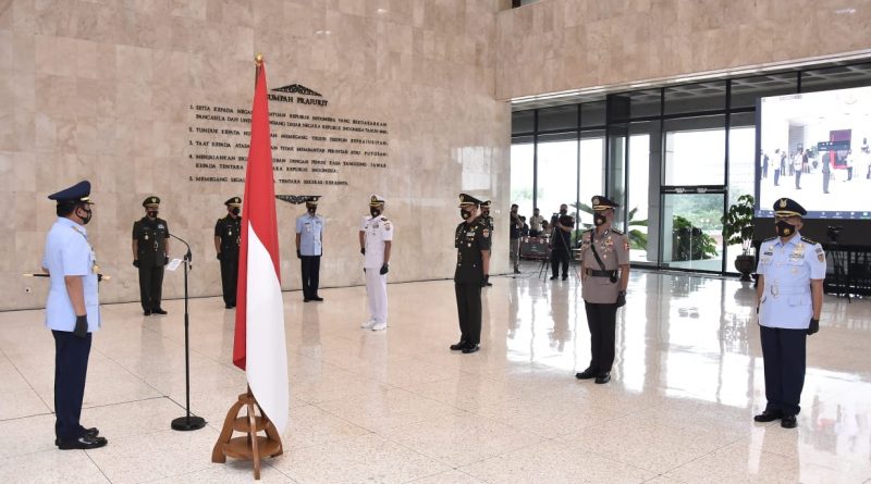 Bandung, Panglima TNI Marsekal TNI DR. (H.C.) Hadi Tjahjanto, S.I.P. memimpin upacara penutupan Pendidikan Reguler Sesko TNI Angkatan XLVII TA. 2020, bertempat di Ruang Hening, Gedung Soedirman, Mabes TNI, Cilangkap, Jakarta Timur, Kamis (3/12/2020). Upacara digelar secara virtual ditengah pandemi Covid-19. Pelaksanaan upacara di Mabes TNI diwakili oleh empat Perwira Siswa (Pasis) Sesko TNI, sementara Pasis yang lainnya mengikuti upacara secara virtual di Sesko TNI Bandung, Jawa Barat.