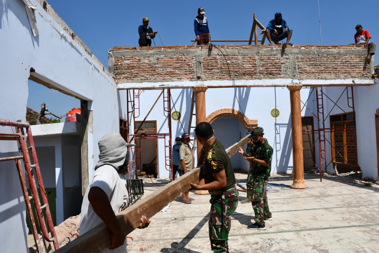 Anggota Koramil 0802/03 Babadan dan anggota Makodim 0802/Ponorogo bersama masyarakat Dusun Tlasih melakukan renovasi dengan membongkar bangunan, tembok dan atap masjid.