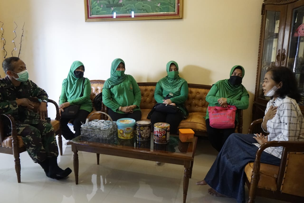 Ketua Persit KCK Cabang XIX Kodim Ngawi Ny. Hany Mahmudhi yang didampingi oleh ibu-ibu pengurus Persit dengan membesuk Ny. Sudarsono yang sedang istirahat sakit di rumahnya di Desa Karangasri Kec. Ngawi Kota.