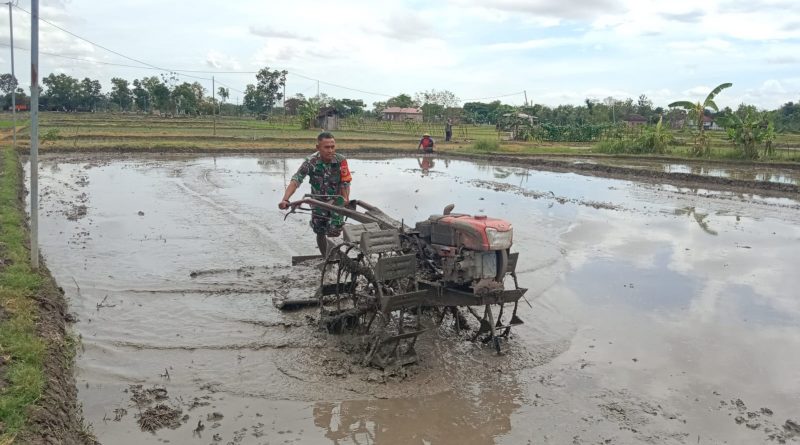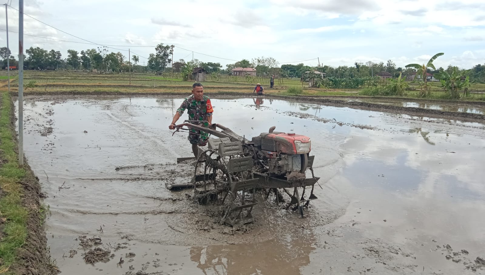 Pendampingan Petani, Babinsa Kodim Ponorogo Bantu Bajak Sawah