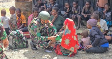 Kebersamaan Prajurit TNI dan warga, khususnya anak-anak tampak terlihat saat Satgas Pamtas Yonif Raider 142/KJ membagikan permen gula-gula kepada anak-anak gereja yang melaksanakan Sekolah Minggu di Gereja Gidi Ebenezher Karubaga.