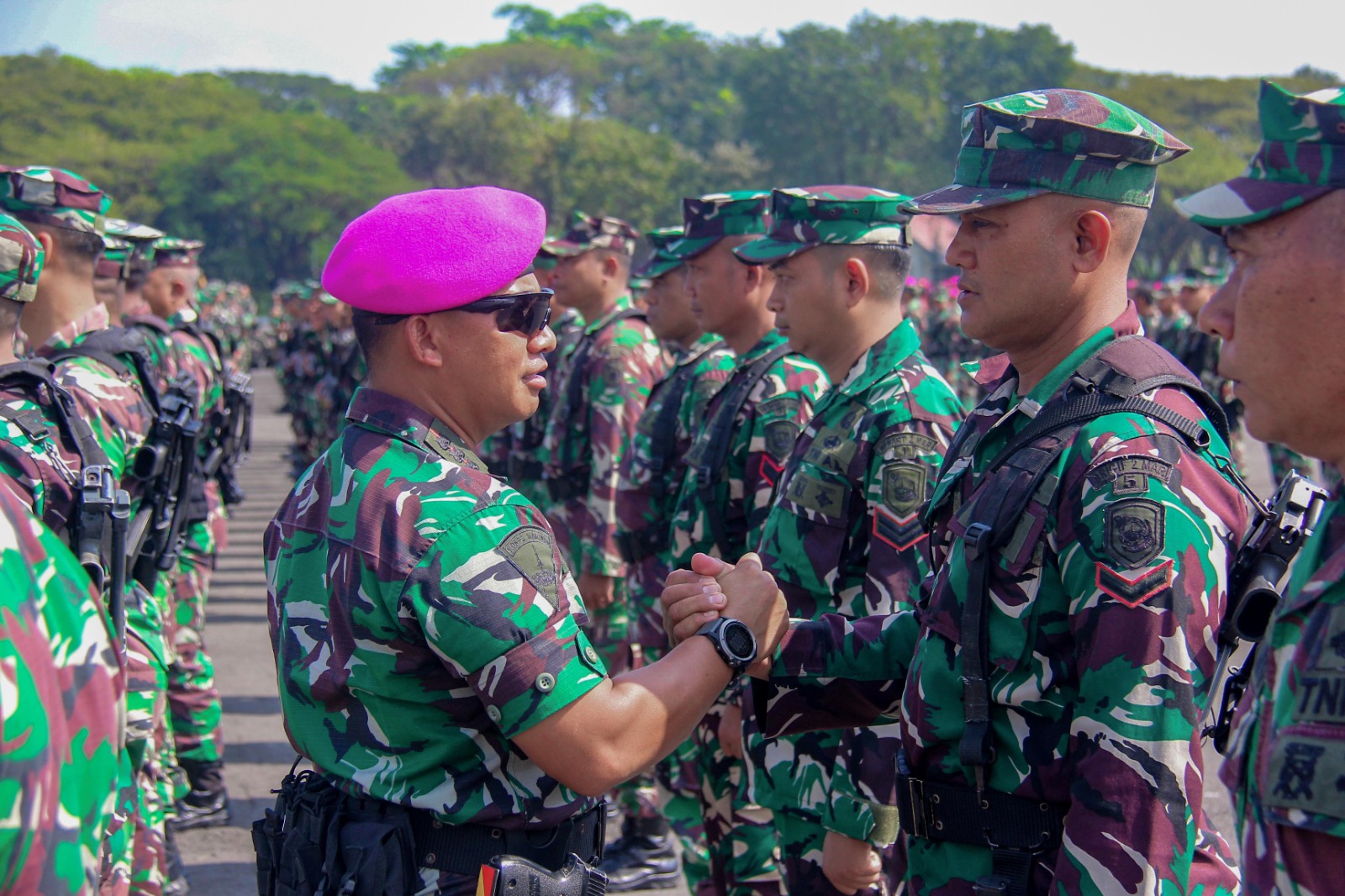 Prajurit Menkav 2 Mar Ikuti Pengecekan Kesiapan Pasukan Upacara Gelar Satuan Operasional dan Kehormatan Militer