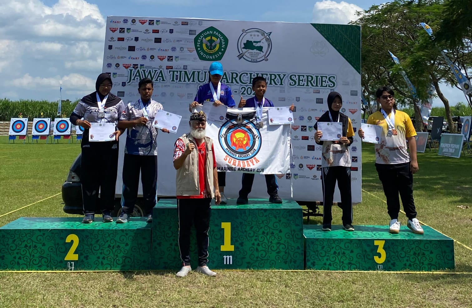 Kediri, Anggota Batalyon Kapa 2 Marinir mengharumkan nama satuan dalam ajang Jawa Timur Archery Series I Tahun 2026 yang digelar di Lapangan Fast Kahuripan, Desa Silir, Kabupaten Kediri. Minggu (19/04/26).