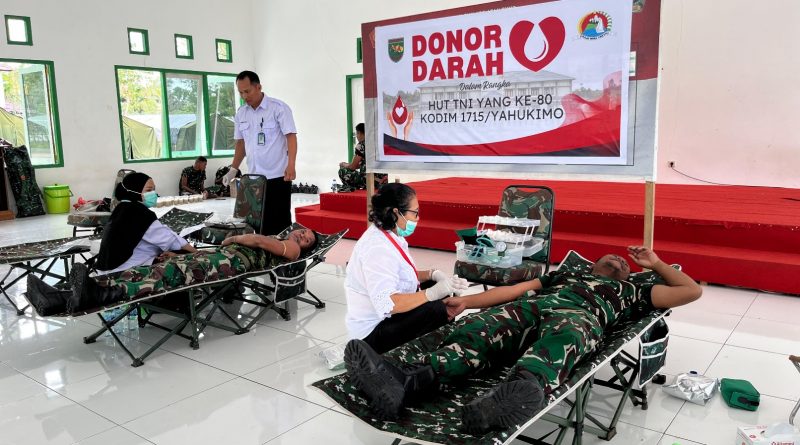 Yahukimo – Dalam rangka menyambut HUT Tentara Nasional Indonesaia (TNI) ke-80, pada hari Rabu, 17 September 2025 Kodim 1715/Yahukimo bekerja sama dengan RSUD Dekai, Kab Yahukimo menggelar aksi donor darah di Makodim 1715/Yahukimo.
