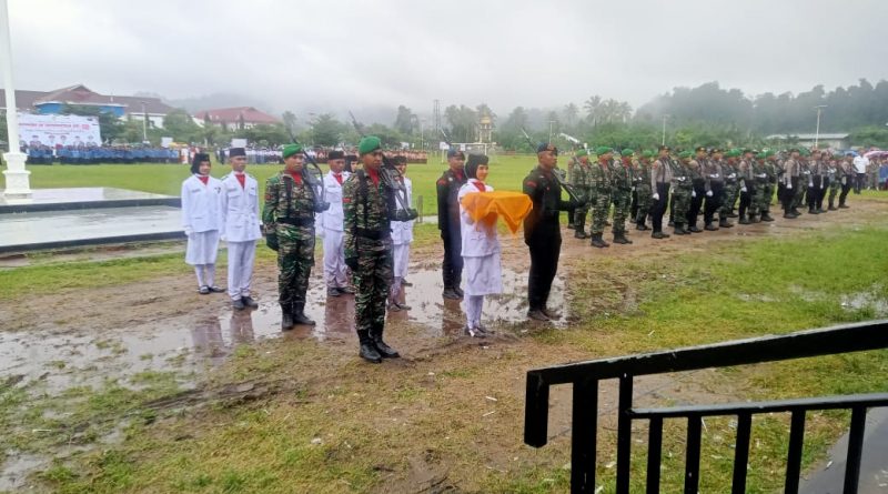 Satgas TMMD Kodim 1506/Namlea Ikuti Upacara HUT Ke-80 Kemerdekaan RI di Alun-Alun Kota Buru Selatan