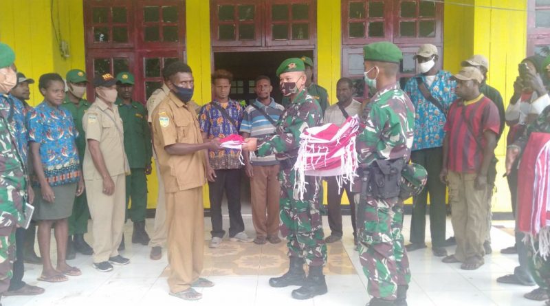 Satgas Yonif 125/Simbisa Bagikan Bendera Merah Putih Kepada Warga Yanggandur