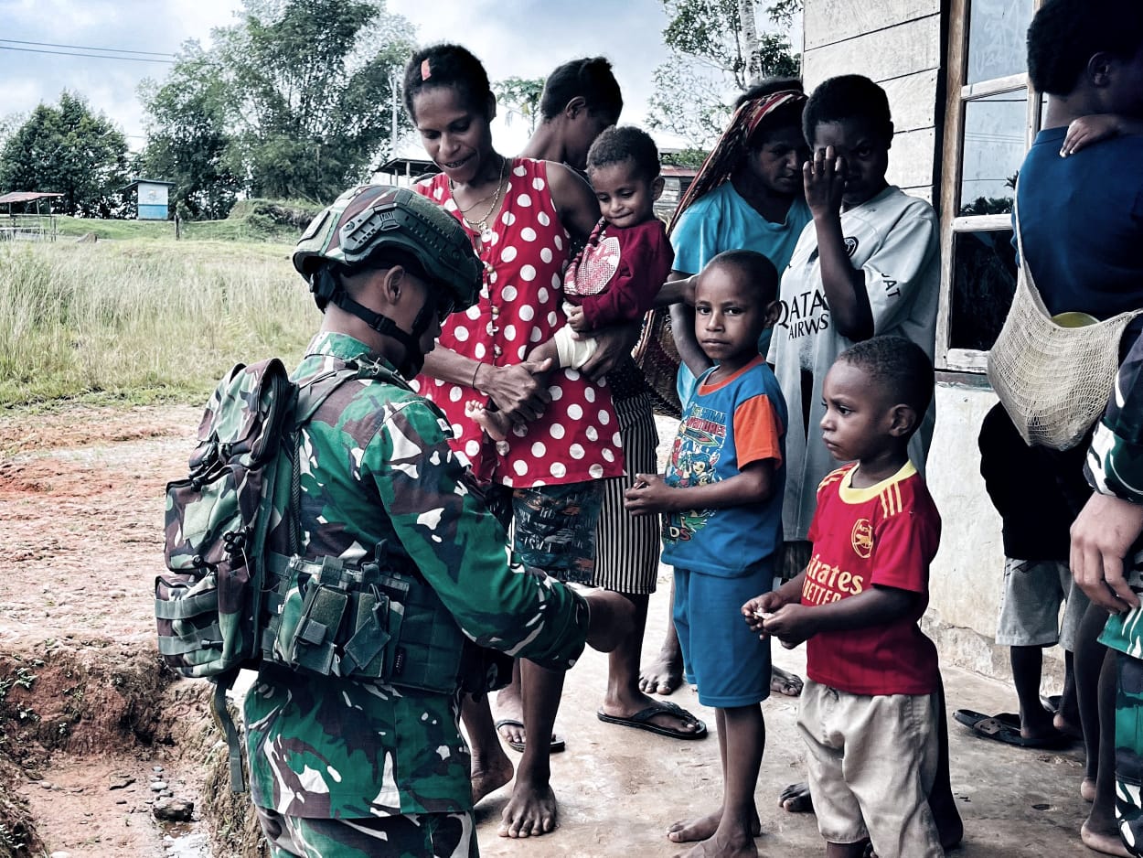 Kampung Upkim – Dalam rangka mempererat hubungan dengan masyarakat sekaligus meningkatkan kualitas kesehatan warga, Satgas Yonif 126/KC melaksanakan kegiatan Anjangsana dan Pelayanan Kesehatan (Yankes) di Posyandu Kampung Upkim, Distrik Waropko, Kabupaten Boven Digoel, Papua, Kamis (7/8/2025).