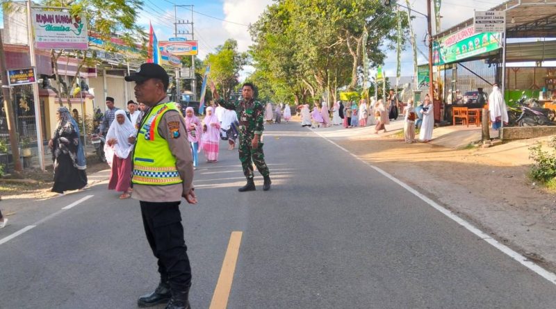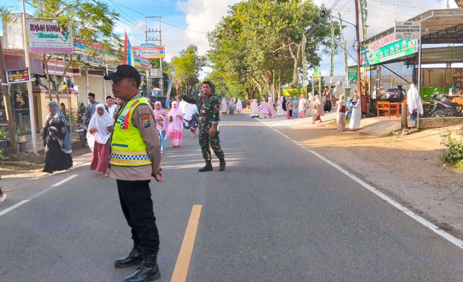 Pengamanan dilakukan secara menyeluruh dengan melibatkan Babinsa, Bhabinkamtibmas, serta unsur terkait lainnya. Aparat tampak aktif memantau pergerakan jamaah yang terus berdatangan sejak pagi, sembari memberikan imbauan agar masyarakat tetap menjaga ketertiban selama pelaksanaan ibadah berlangsung.