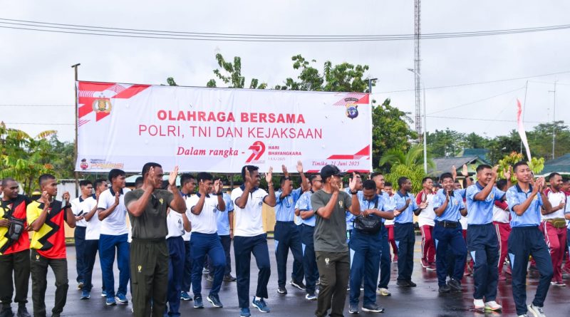 Sinergitas TNI-Polri: Kodim 1710/Mimika Ikuti Olahraga Bersama Dalam Rangka Hari Bhayangkara Ke-79