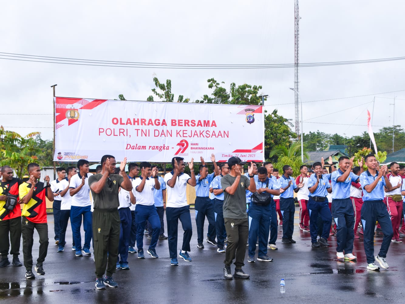 Acara olahraga bersama ini diikuti oleh personel Kodim 1710/Mimika dan seluruh satuan TNI serta Kejaksaan Mimika. Kegiatan dimulai dengan apel gabungan dan dilanjutkan dengan jalan santai dan senam bersama.