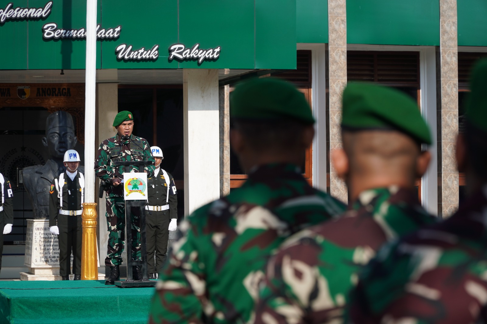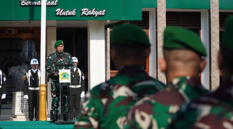 “Setiap prajurit TNI, dari tamtama hingga perwira tinggi adalah penjaga kedaulatan di setiap jengkal wilayah NKRI, baik itu di perbatasan darat, di lautan, dan di langit nusantara yang membentang,” kata Jenderal Agus dalam amanatnya yang dibacakan Danrem 081/DSJ Kolonel Arm Untoro Hariyanto pada upacara bendera di Halaman Makorem 081/DSJ, Jl. Pahlawan No. 50 Kota Madiun, Jumat (17/10/2025).