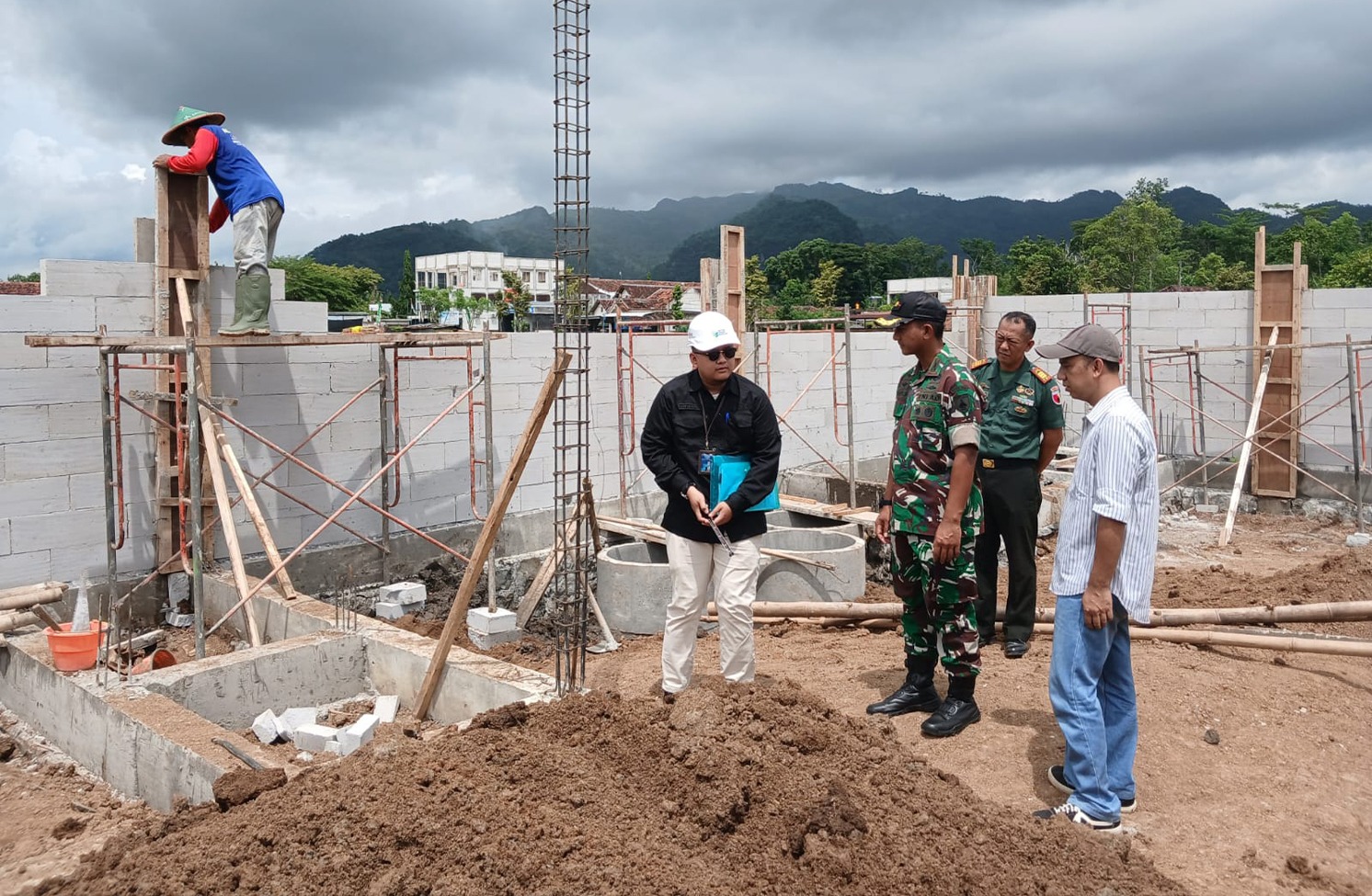 Sesampainya di lokasi, Letkol Roy disambut perangkat desa dan warga yang tengah melakukan aktivitas pembangunan. Suasana gotong royong tampak mengiringi proses pengerjaan gedung KDKMP, yang digagas pemerintah sebagai pusat ekonomi baru di setiap desa. Dandim meninjau detail bangunan untuk memastikan kualitas konstruksi sesuai rencana dan standar yang telah ditetapkan.