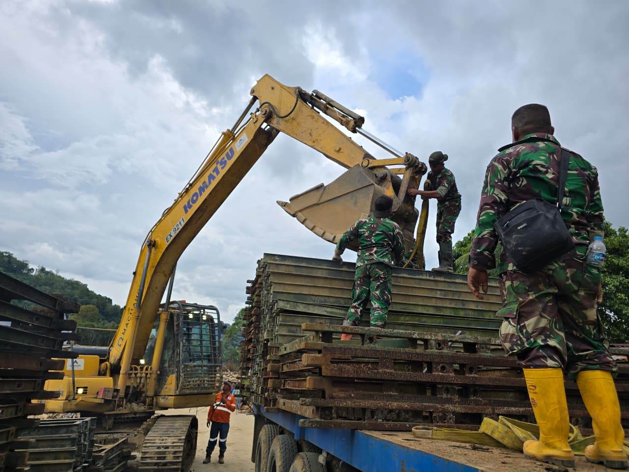 Sebanyak 20 personel Yonzipur I/DD bersama dukungan alat berat berupa crane dan excavator dikerahkan untuk mempercepat pembangunan jembatan darurat tersebut. Proses pemasangan terus dipacu mengingat jalur itu merupakan nadi transportasi antara Tapsel Tapteng.