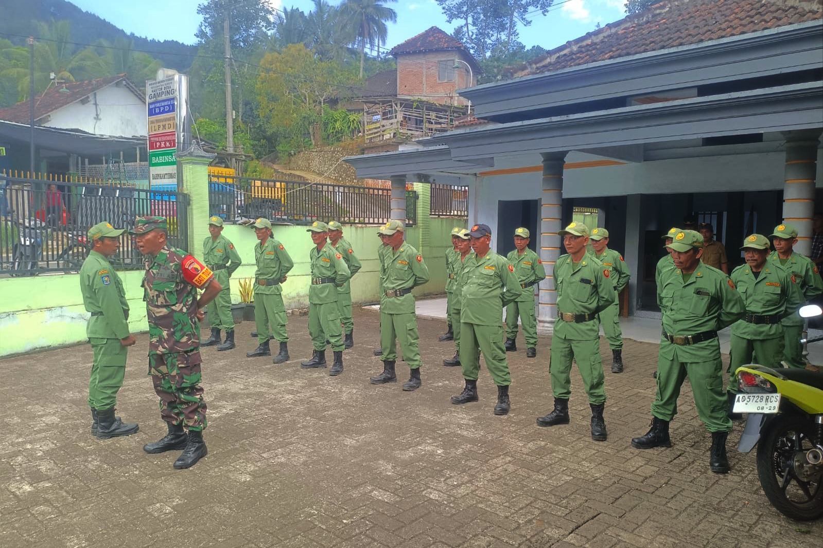 Menariknya, kegiatan ini juga menjadi ruang dialog terbuka. Serma Mustofa mendengarkan berbagai kendala yang dihadapi Linmas, seperti konflik antarwarga, pengamanan acara adat, hingga kesiapan saat pemilu. “Kami datang bukan membawa perintah, tapi membawa penguatan,” tegasnya, menandakan pola kemanunggalan TNI–rakyat.
