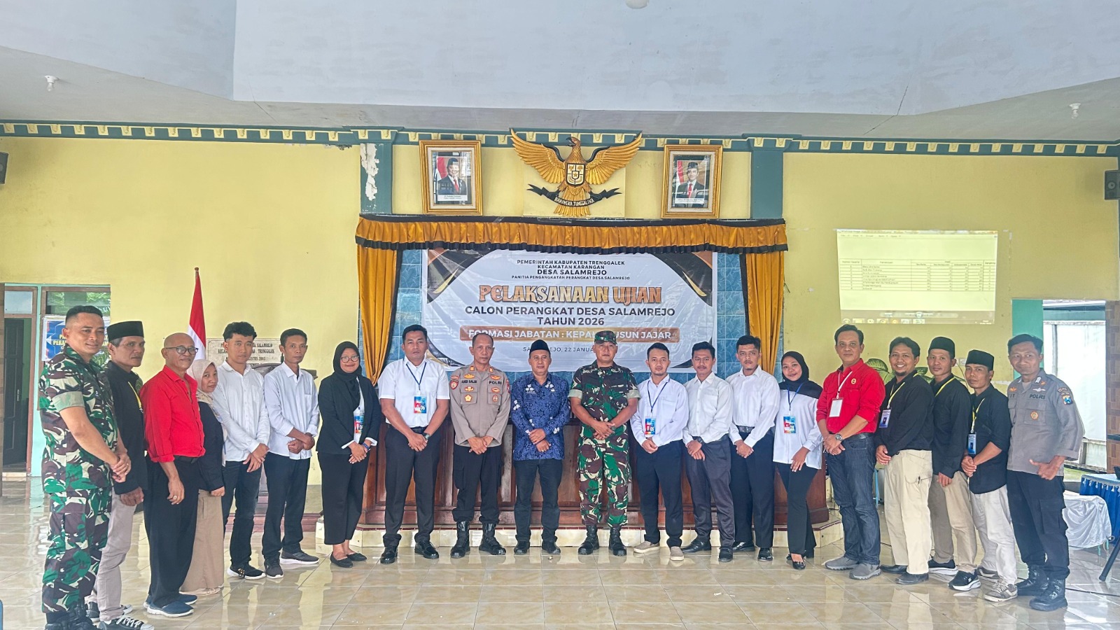 Trenggalek – Komitmen TNI melalui satuan teritorial kewilayahan dalam mendukung kemajuan pemerintahan desa terus ditunjukkan secara nyata. Salah satunya melalui pengawalan pelaksanaan ujian calon Perangkat Desa formasi Kepala Dusun Jajar, Desa Salamrejo, Kecamatan Karangan, Kabupaten Trenggalek, Jumat (23/1/2026).
