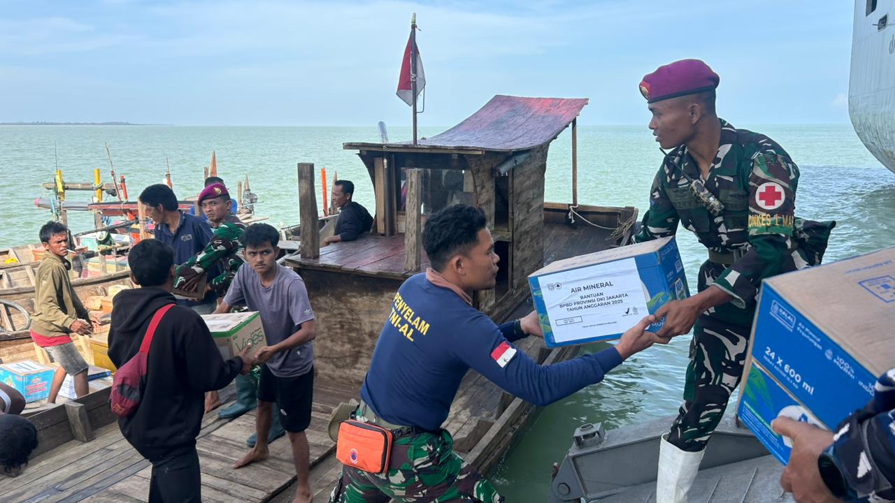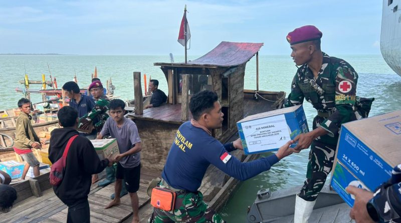 Aceh Tamiang, Gelombang tinggi dan cuaca yang tidak menentu tidak menyurutkan semangat Prajurit Petarung Marinir yang tergabung dalam Satgas Penanggulangan Bencana Alam (Gulbencal) TNI AL untuk menyalurkan bantuan ke wilayah terdampak banjir di Aceh Tamiang. Sejak pagi, Kamis (11/12/2025), personel Satgas melaksanakan serpas dan sermat menggunakan kapal-kapal nelayan, membawa logistik penting bagi masyarakat yang masih terisolir.