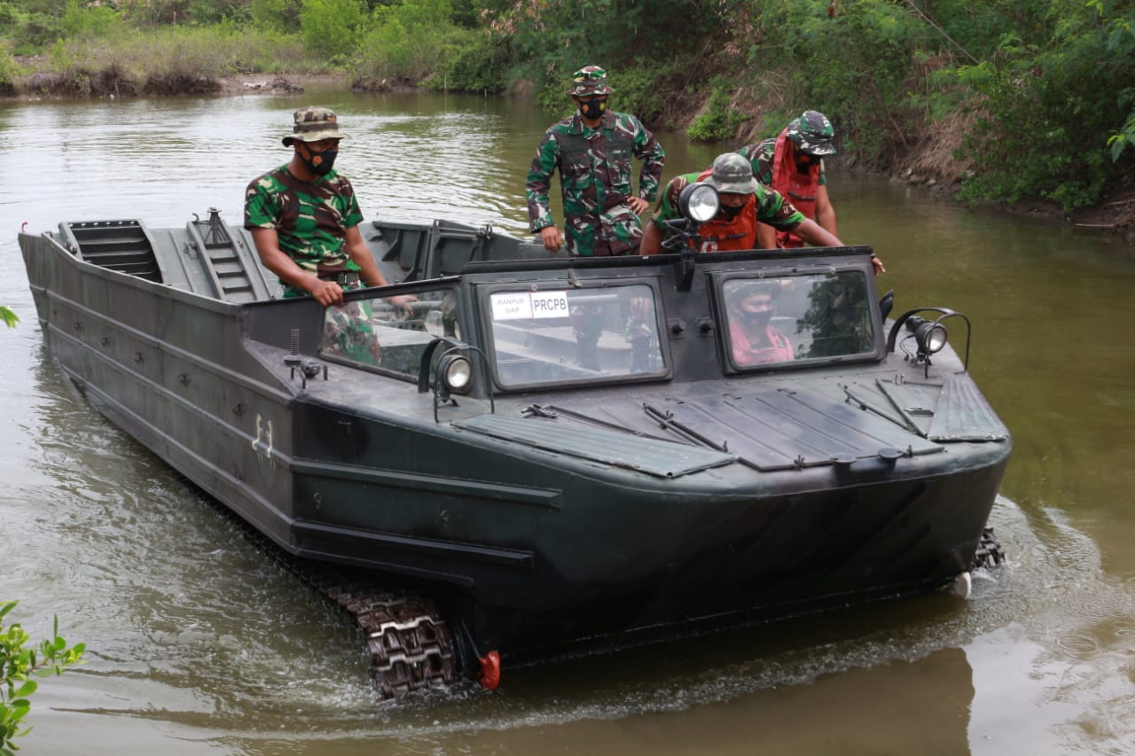 Surabaya, Batalyon Kendaraan Amfibi Pengangkut Artileri 2 Marinir (Yonkapa 2 Mar) dalam rangka menyongsong tugas pokok TNI, yaitu OMP dan OMSP yang didalamnya termasuk penyiapan Pasukan Reaksi Cepat Penanggulangan Bencana (PRCPB) laksanakan uji kedap Kendaraan Kempur Kapa K61 di kolam uji kedap Kendaraan Tempur Resimen Kavaleri 2 Marinir Kesatrian Soepraptono, Ujung, Surabaya. Selasa (08/12/2020)