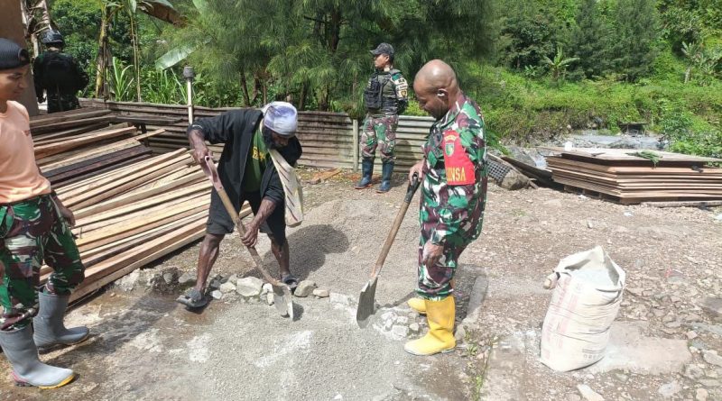 Timika – Dalam rangka mewujudkan kemanunggalan TNI – Rakyat, Babinsa Koramil 1710-04/Tembagapura Pelda Indra R dan Serka Ikbertus Sumel melalui