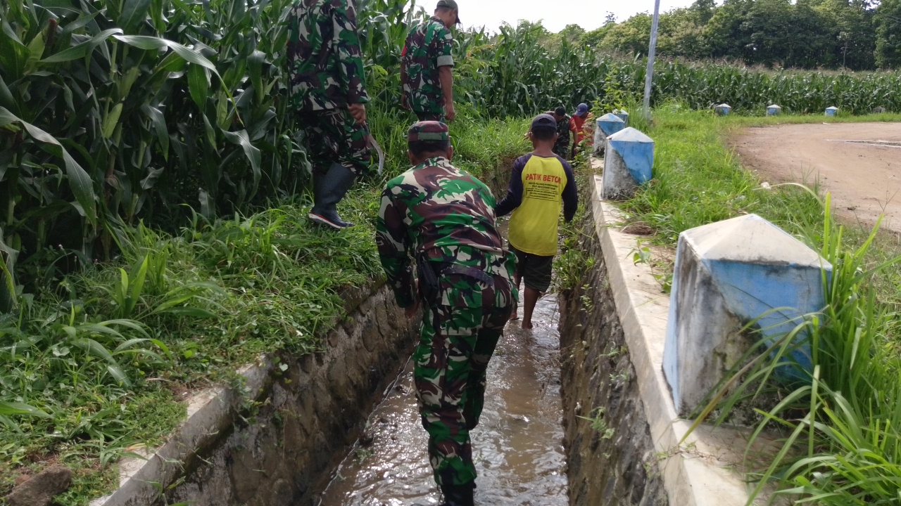 Anggota Kodim Ponorogo Kerja Bakti Bersihkan Saluran Air Bersama warga