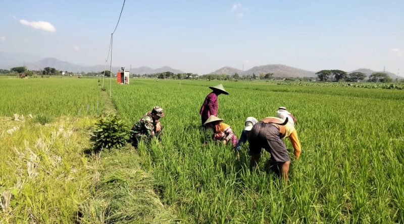 Babinsa Kodim Ponorogo Bantu Petani Siangi Gulma Tanaman Padi