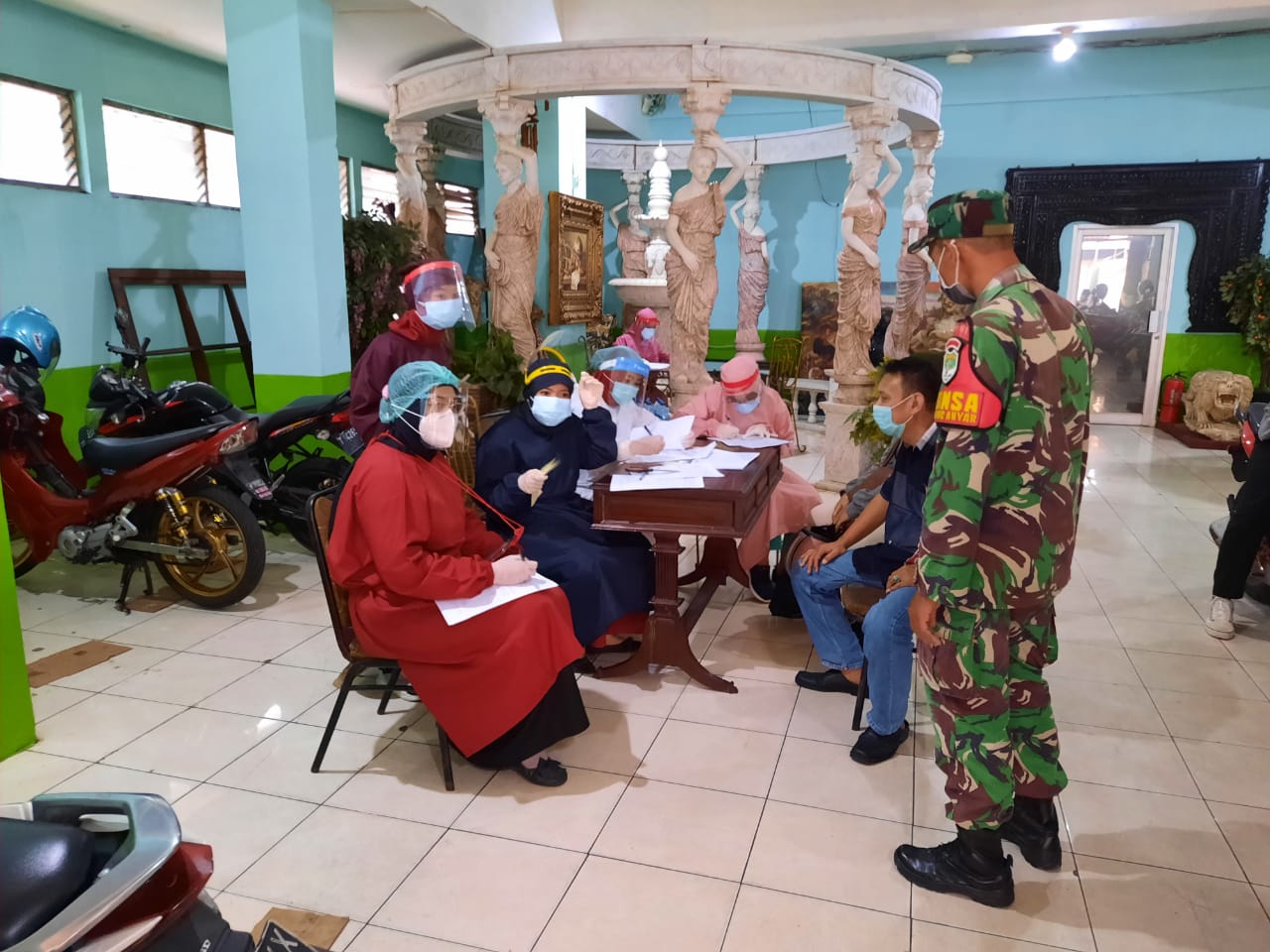 Jakarta Pusat.(29/1) Babinsa Koramil 02 Sawah Besar Serka Eko Ari dan Serda Faisal melaksanakan monitoring swab on the spot bagi warga binaan di Kelurahan Karang Anyar.